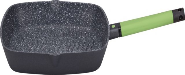 מחבת גריל, 28 ס"מ מסדרת Lava Stone, עם ציפוי Non Stick איכותי, דמוי שיש גרניט, תוצרת Greblon, בטכנולוגיה גרמנית. הציפוי מונע את הידבקות המזון למחבת, ללא Pfoa, קדמיום או עופרת. המחבת מיועדת לשימוש מופחת בשמן ומתאימה לכל סוגי הכיריים. למחבת ידיות ארגונומיות Soft touch, מבודדות חום, לנוחות בשימוש ובהעברה. המוצר הינו במבצע 50% הנחה.