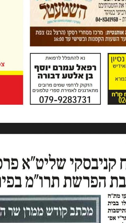 טעות משעשעת נפלה היום במודעה באחד העיתונים החרדים.