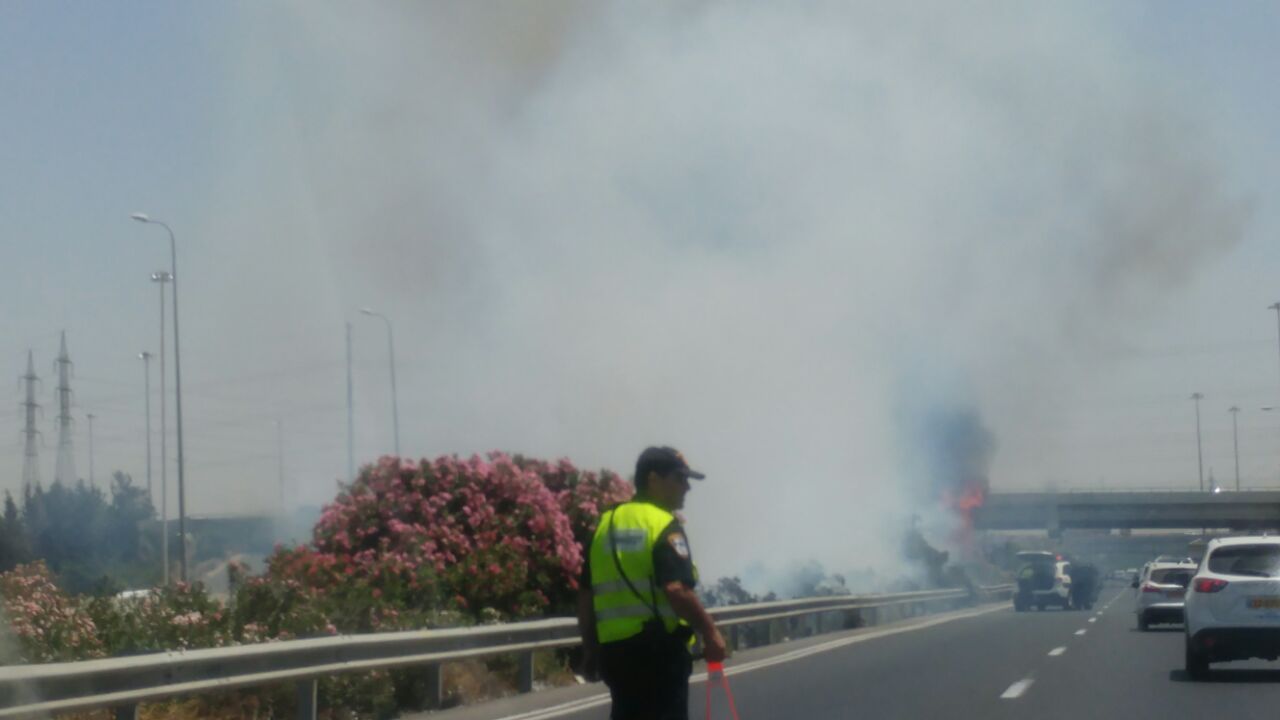 התנועה בכביש מתל אביב לירושלים, בכיוון מזרח, נחסמה לתנועה במחלף גנות בעקבות שריפת חורש.