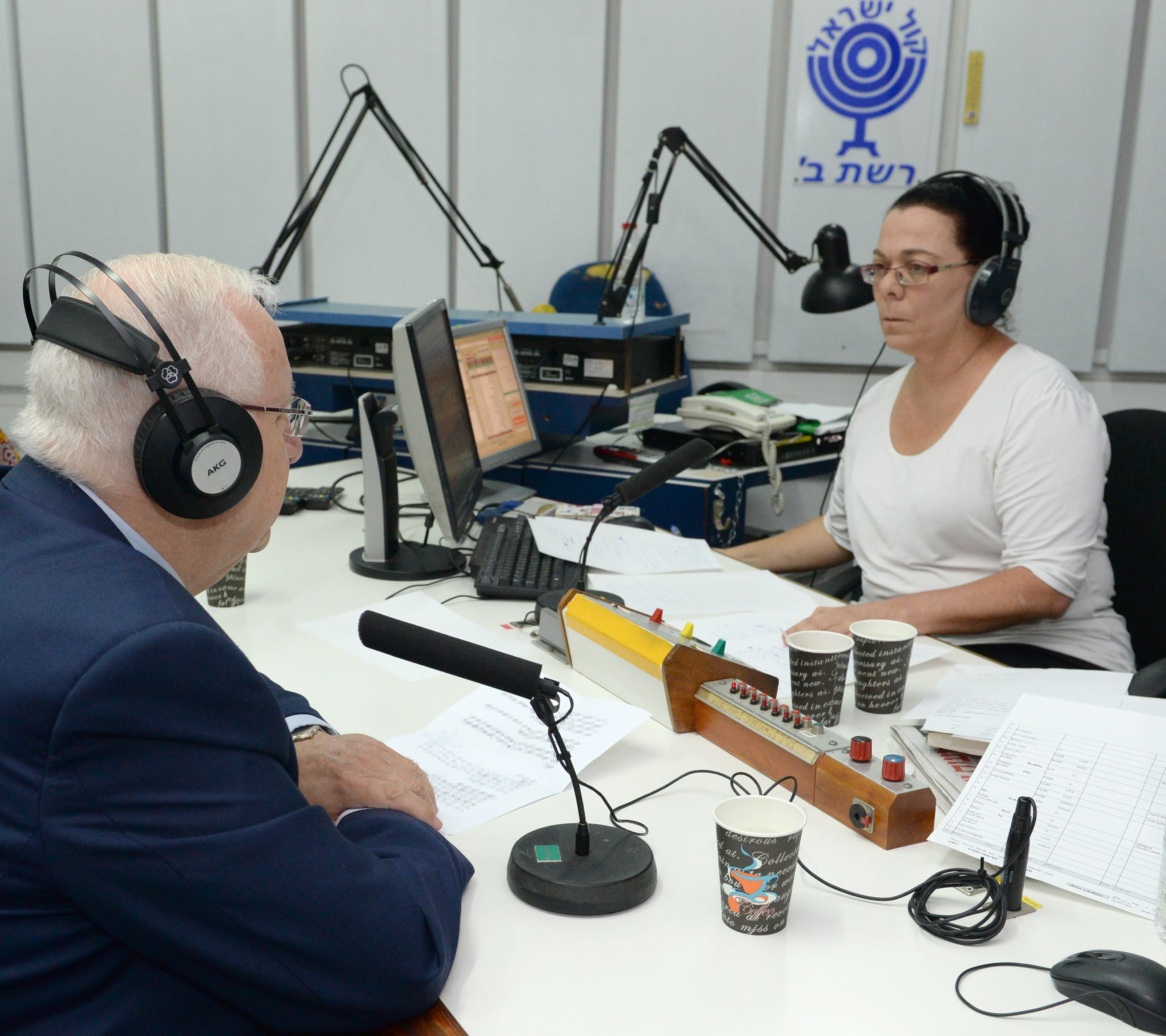 סגירת רשות השידור. נשיא המדינה, ראובן (רובי) ריבלין, הגיע היום לאולפני קול ישראל בירושלים והעניק ראיון פרידה לתכנית יומן הצהריים האחרונה של "בחצי היום" ברשת ב', בהגשת אסתי פרז.