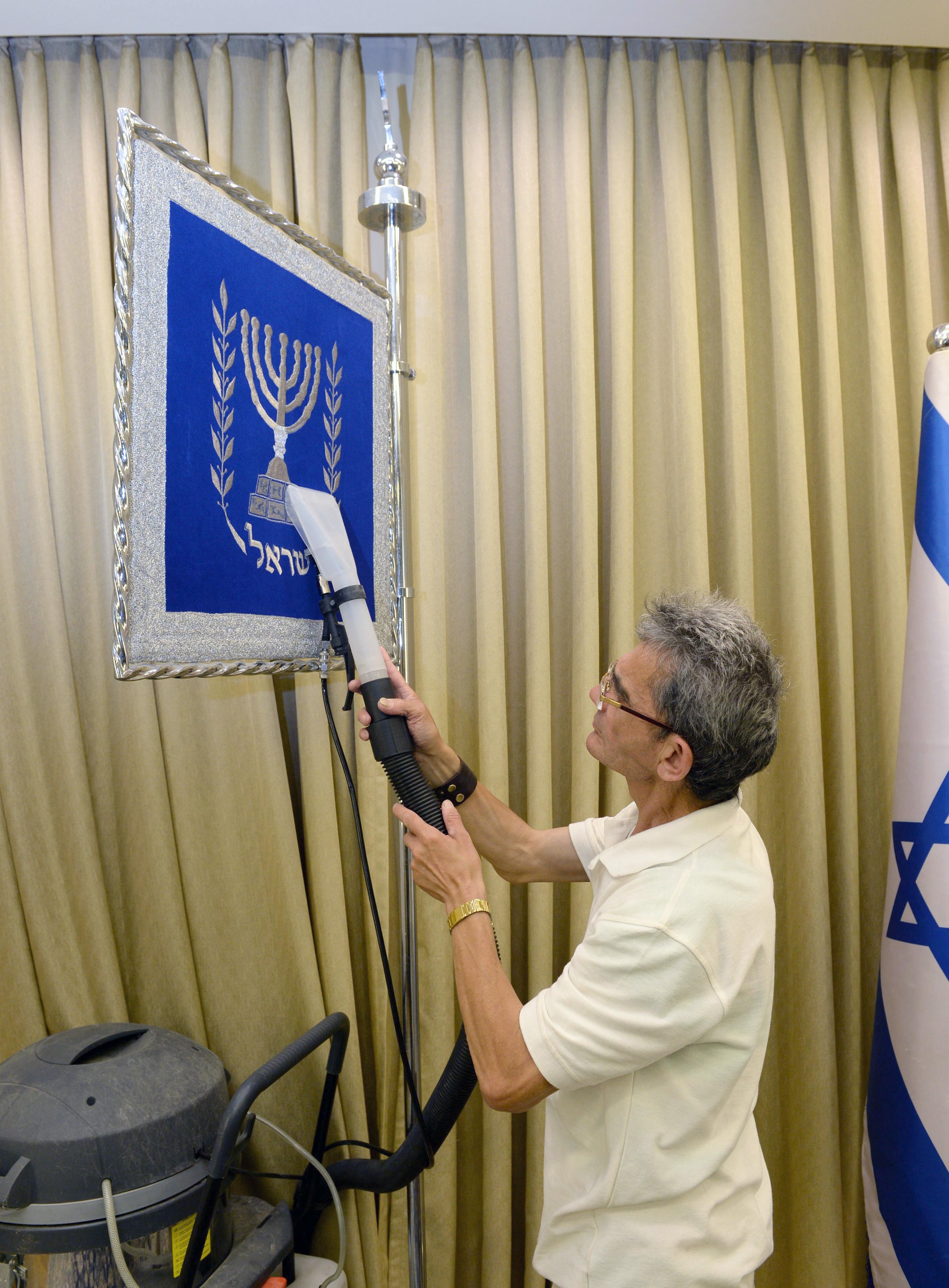 חמישה ימים לפני נחיתתו של נשיא ארצות הברית דונאלד טראמפ במדינת ישראל, עובדי בית הנשיא שוקדים על הפרטים האחרונים לקראת ביקורו שיחל בקבלת הפנים בבית הנשיא.