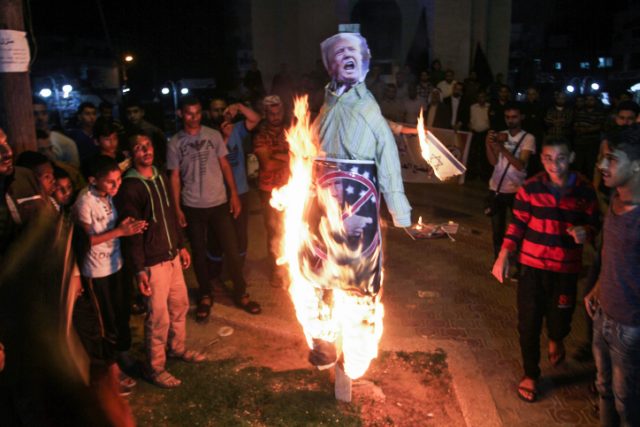 הפגנה זו היא המשך ישיר של ההפגנות שנערכו אמש בבית לחם במסגרתם שרפו המפגינים בובה של הנשיא טראמפ.