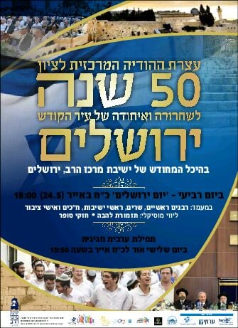 אירועי יום ירושלים לציבור הדתי תשע"ז – יובל לאיחוד העיר