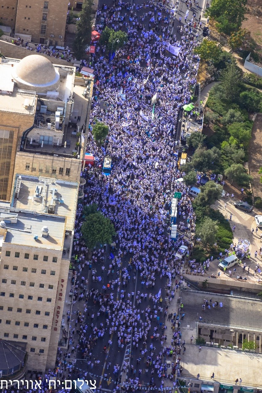 בשעה 16:00 החלה ההתכנסות לריקוד דגלים, ממרכז העיר לעבר הכותל המערבי.