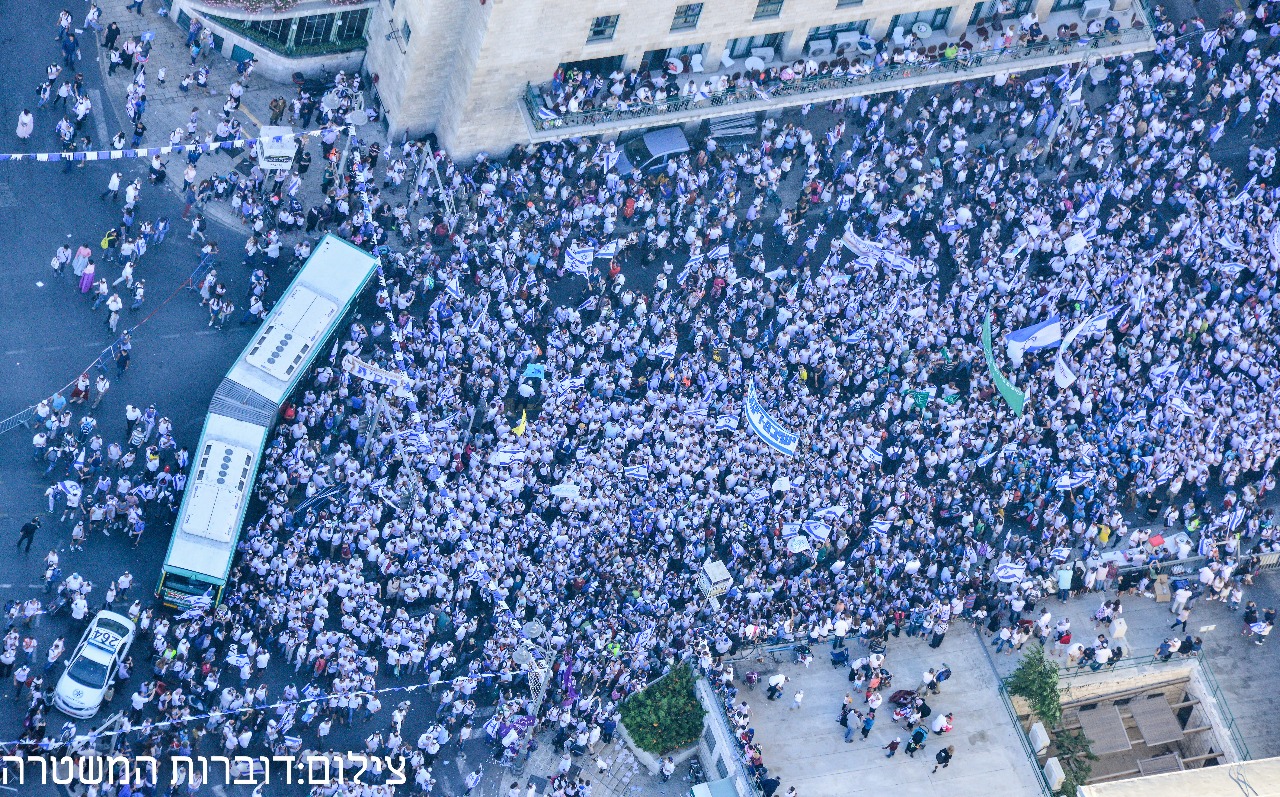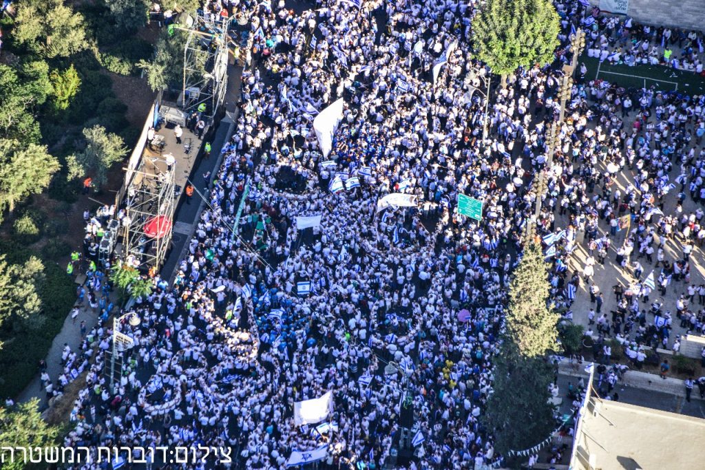 יום ירושלים בסרוגים. העוצמה של הציונות הדתית. צעדת ריקוד הדגלים התקיימה אתמול בהשתתפות עשרות אלפים ויש שספרו מאה אלף חוגגים.