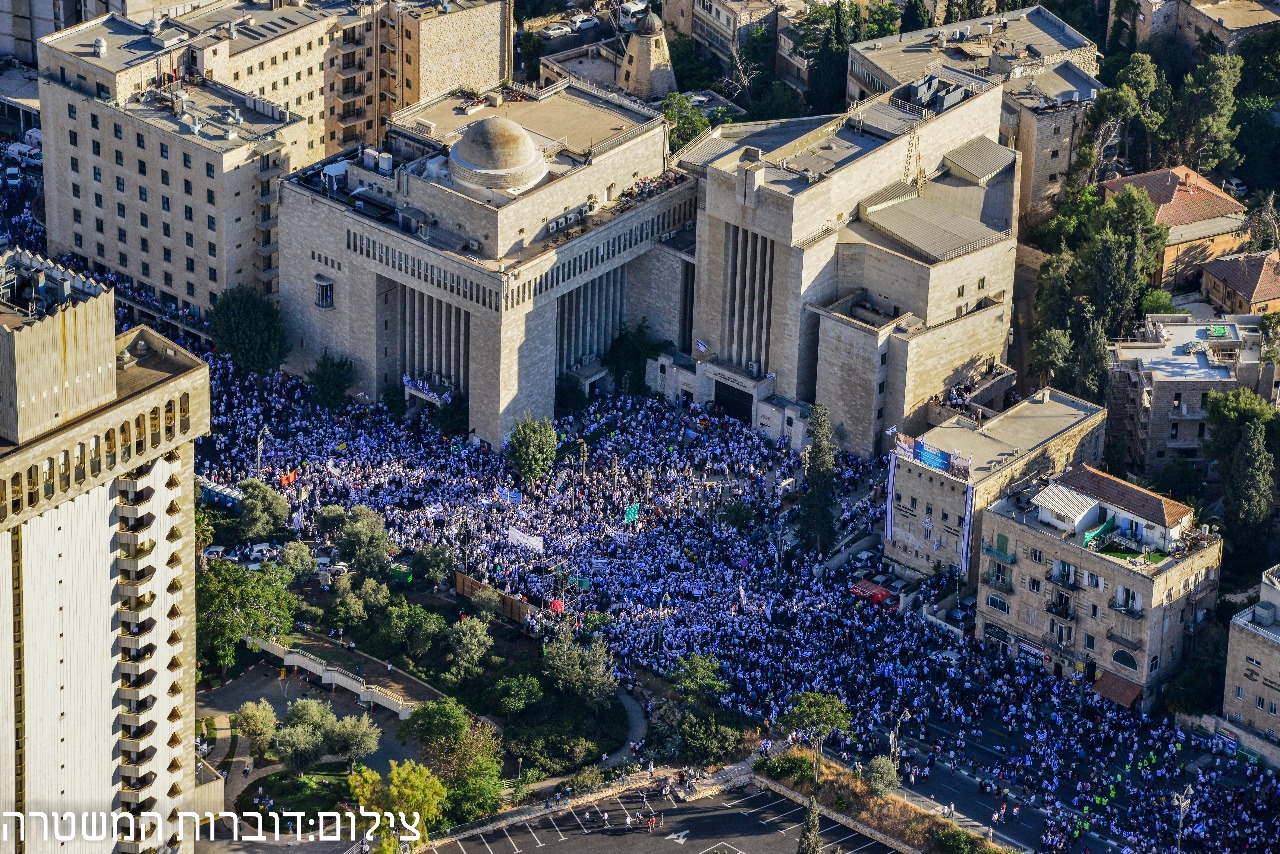כן נעצר יהודי שהשליך בקבוק לעבר הפגנת השמאל שהתקיימה בכיכר צה"ל.