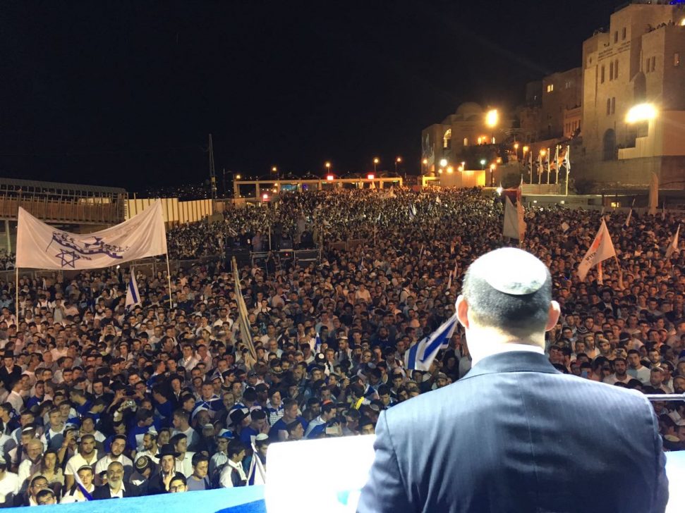 נפתלי בנט נואם בעצרת המרכזית בכותל המערבי