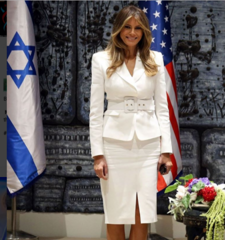 גם אם אין לכן כמה אלפי דולרים לרכוש חליפת לואי ויטון, בטוח יש לכן ז'קט לבנה וחצאית שיכולה להתאים ולהפוך יחד לסט חגיגי בסטייל מלניה. אני ממליצה לשבור עם חגורה עבה בצבע דווקא שונה שתשבור את הרצף הלבן