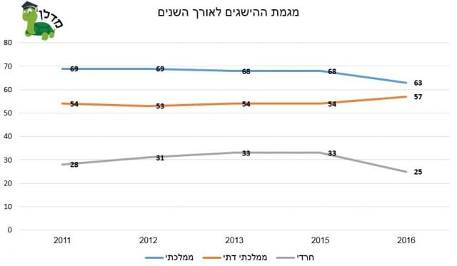 במדד הכללי החינוך הממלכתי דתי רשם עלייה של 4 נקודות, לעומת החינוך הממלכתי שירד ב-2 נקודות והחינוך החרדי שרשם ירידה משמעותית של 10 נקודות.