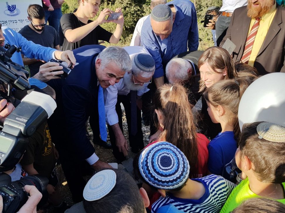 קורץ לקהל הסרוג? יו"ר מפלגת 'יש עתיד' ח"כ יאיר לפיד, הגיע היום לטקס הנחת אבן הפינה לשכונת "היובל" בכפר עציון, לציון 50 שנה להקמת הישוב מחדש.