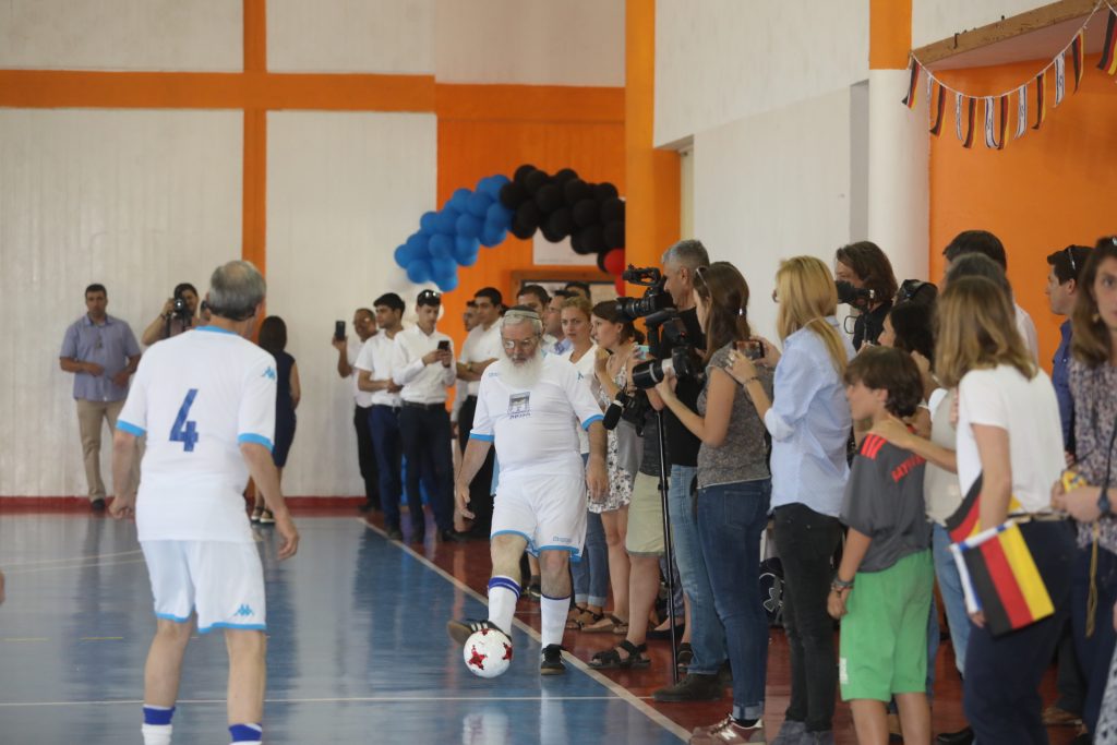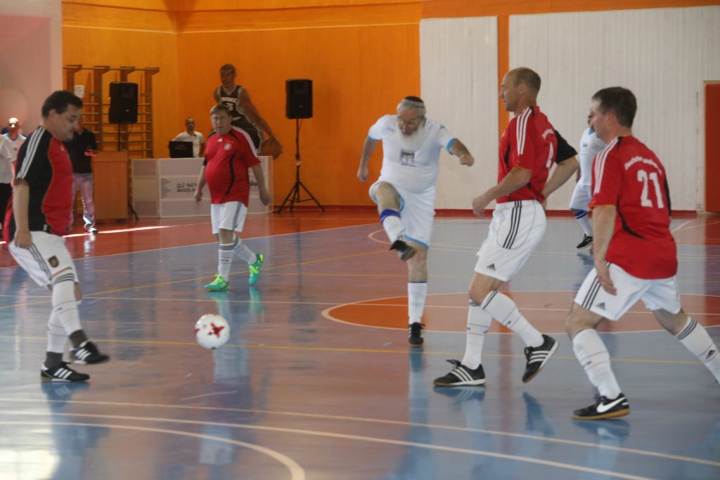 בחימום זה הלך יותר טוב: סגן שר הביטחון אלי בן דהן (הבית היהודי) ששיחק בעבר בנבחרת הנוער של הפועל באר שבע, בועט לשער ומבקיע.