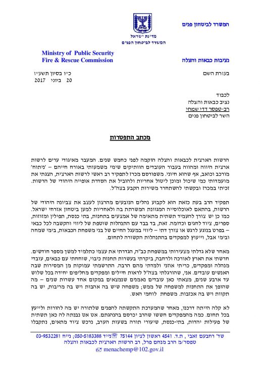 קצת פחות מארבע שנים לאחר שעשה היסטוריה והיה לרב הראשון של מערך כיבוי האש בישראל, הניח השבוע הרב מנחם פרל על שולחנו של נציב כבאות והצלה, רב טפסר דדי שמחי, מכתב פיטורין ובו הוא קובע כי לא יוכל עוד לכהן בתפקידו לנוכח הזלזול המופגן לו הוא זוכה, ובעיקר לנוכח ההתעלמות מבעיות דת מהותיות הנוגעות לתפקודם של הכבאים.