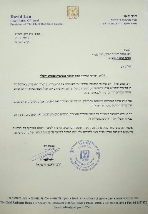 אשמח להיפגש עמך בהקדם על מנת ליצור תשתית בו תפעל הרשות לכיבוי והצלה בשיתוף עם הרבנות הראשית לישראל ותיתן מענה ראוי לדברים אלו, זאת במגמה לשמור על צביונה היהודי של מדינת ישראל.