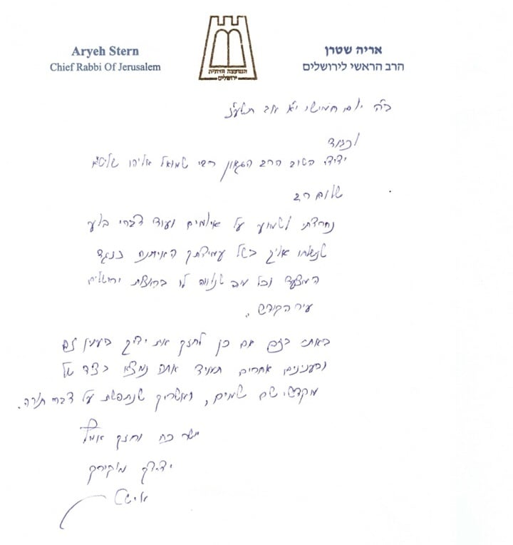 זוהי גדלות תורנית! אשרינו שהעיר ירושלים זכתה לרב כזה. יהי רצון שנשמע שיש אחדות ואחווה בין גדולי התורה. מו"ר הרב אריה שטרן שליט"א יודע לפרגן ולעודד את חביריו הנושאים בעול הציבור. הוא ממש תלמיד מו"ר הרב צבי יהודה הכהן קוק זצ"ל.