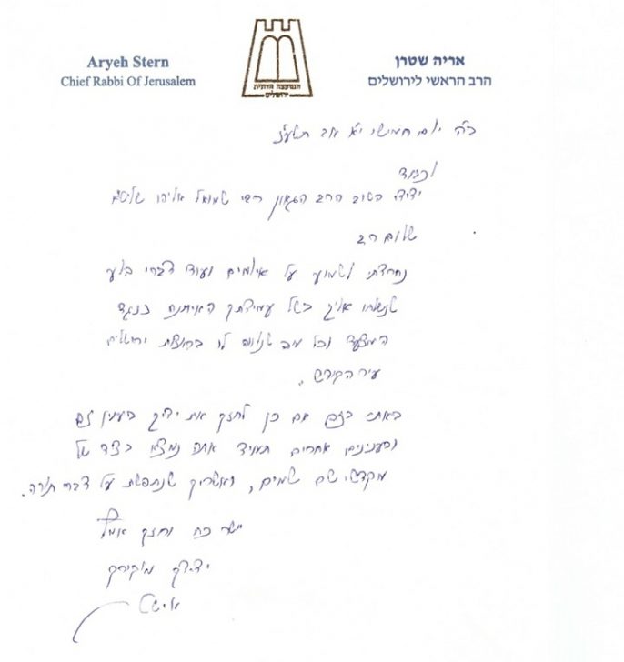 זוהי גדלות תורנית! אשרינו שהעיר ירושלים זכתה לרב כזה. יהי רצון שנשמע שיש אחדות ואחווה בין גדולי התורה. מו"ר הרב אריה שטרן שליט"א יודע לפרגן ולעודד את חביריו הנושאים בעול הציבור. הוא ממש תלמיד מו"ר הרב צבי יהודה הכהן קוק זצ"ל.