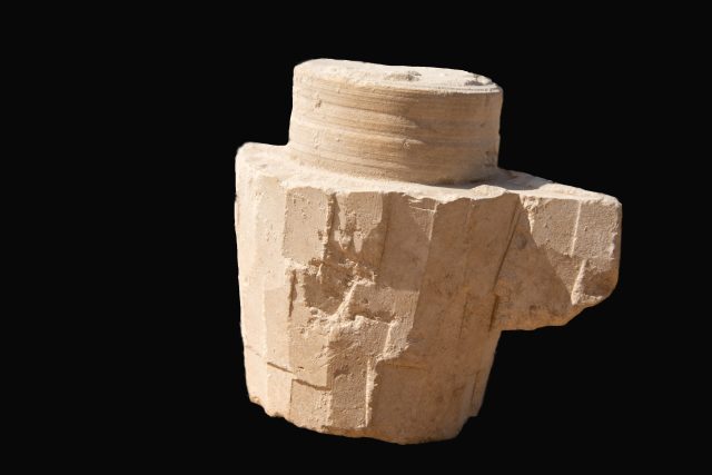 בחפירה נחשפה מעין מנהרה מלאכותית שנחצבה על ידי סתתי האבן, ממנה הופק חומר הקירטון לייצור הכלים באמצעות אזמלי ברזל. על דפנות המנהרה הקטנה ניכרים סימני החציבה. על פני השטח פזורים אלפי גרעיני אבן, שהם, למעשה, פסולת של הכלים. כן נמצאו כלים רבים לא גמורים שנזרקו בשטח, לאחר שככל הנראה, נפסלו בתהליך היצור.
