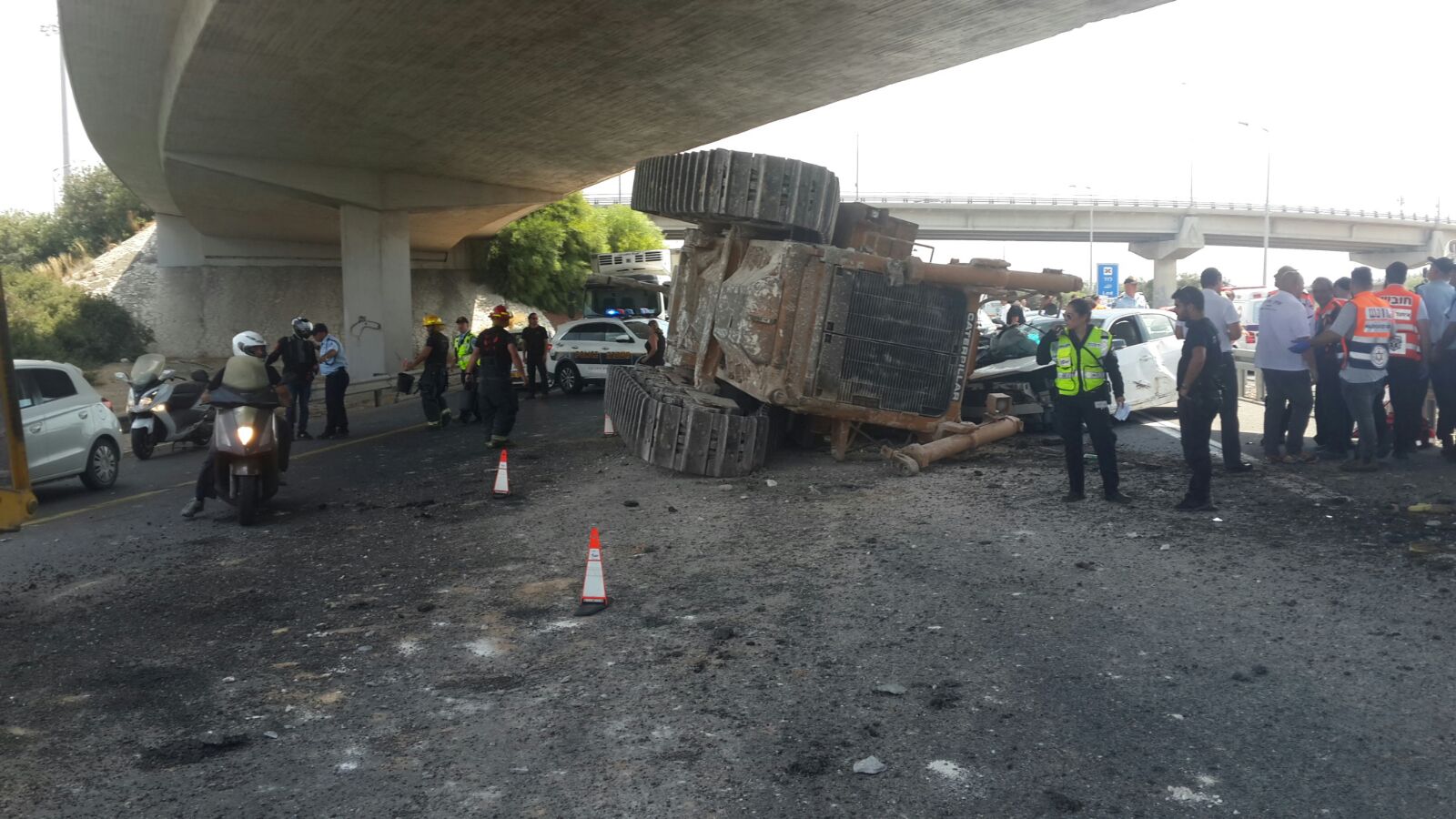 שמואל פוקסמן חובש רפואת חירום של איחוד הצלה סיפר: תוך כדי נסיעה נתקלתי בפקק תנועה ואזרחים סיפרו לי כי טרקטור נפל מגרר על רכב מה שגרם לתאונה עם מעורבות מספר כלי רכב. הגעתי בתוך כחצי דקה לזירת התאונה לטפל בנפגעים. למרבה הנס נוסעי הרכב יצאו מהרכב כשהם סובלים מחבלות ופציעות ובהכרה מלאה ולא נמחצו ע"י הטרקטור שנפל על חלקו הקדמי של אחד מהרכבים".