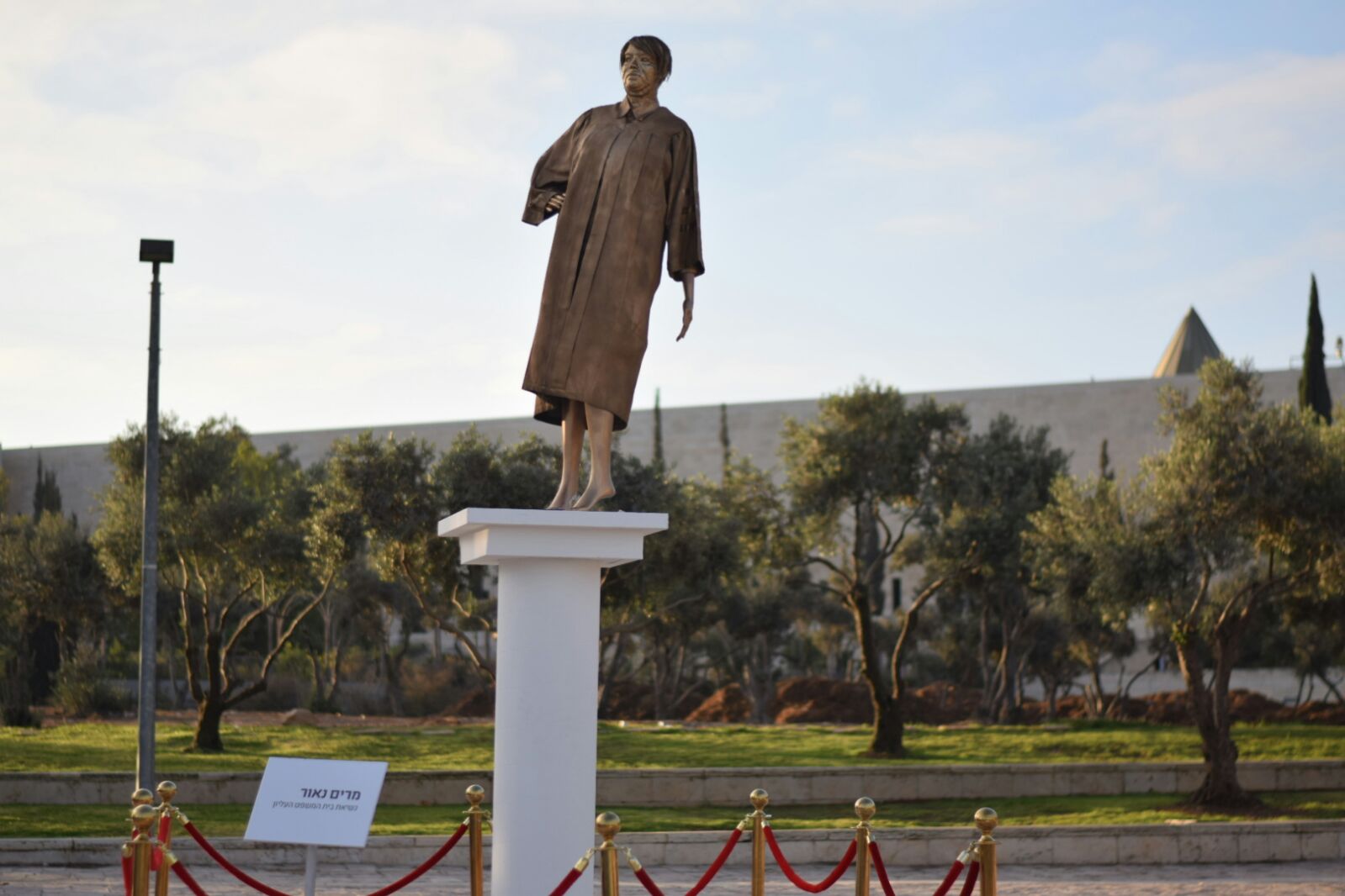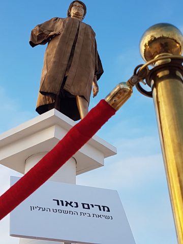מציבי פסל הזהב בדמותה של נשיאת בימ"ש העליון בירושלים מרים נאור חושפים את עצמם.