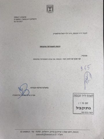 ח"כ מנואל טרכטנברג (המחנה הציוני) הגיע הבוקר (ראשון) ללשכתו של יו"ר הכנסת יולי אדלשטיין בכדי להגיש את המכתב התפטרותו, זאת בגלל כוונתו לשוב לאקדמיה