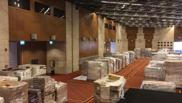 הבוקר (חמישי) שונעו בעזרת 40 משאיות טריילר, מאות אלפי ספרים לבנייני האומה, השוקלים למעלה מ-400 טונות.