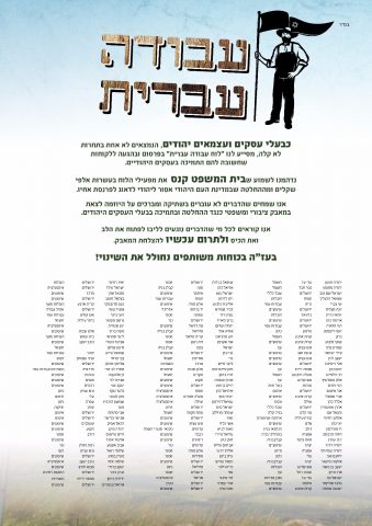 "נדהמנו לשמוע שבית המשפט קנס את מפעילי הלוח בעשרות אלפי שקלים ומההחלטה שבמדינת העם היהודי אסור ליהודי לדאוג לפרנסת אחיו" – כך נפתח מכתבם של 116 בעלי עסקים, שנעזרו במוקד לוח עבודה עברית המפרסם בעלי מקצוע יהודיים למגוון עבודות. במכתבם, פונים בעלי העסקים לציבור בבקשה לסייע במימון מאבקו המשפטי לטובת המשך פעילותו.