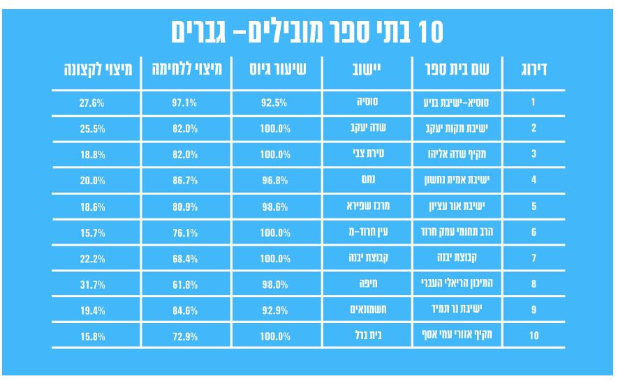 הבוקר (ג') התפרסמו נתוני הגיוס הקרביים לצה"ל, מהם עלה כי 7 מתוך עשרת התיכונים הבולטים בנתוני הגיוס הם מוסדות סרוגים.