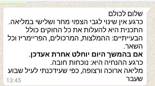 בינתיים עדנה ועדת הפנים, כי לא הספיקו להצביע על ההסתייגויות ולכן הצעת החוק נדחתה ולא יצביעו עליה היום.