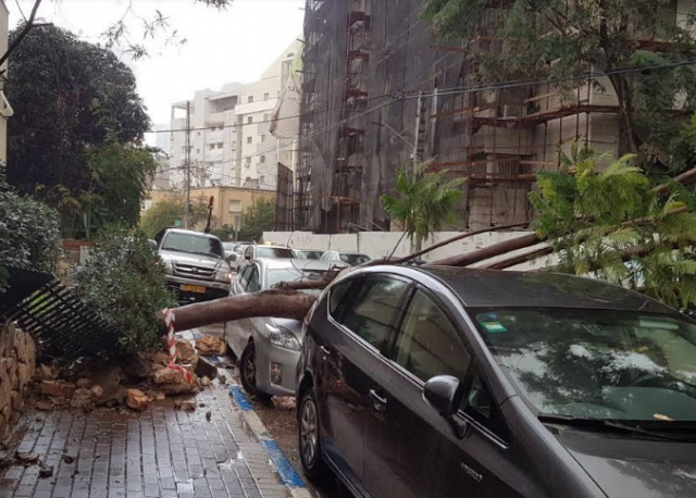 בנוסף, עץ קרס על שתי מכוניות בתל אביב. לא היו נפגעים אך נזק נגרם למכוניות.