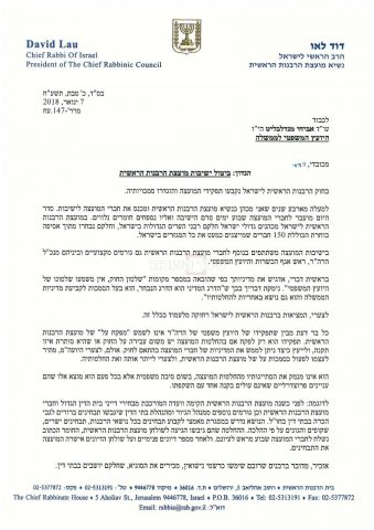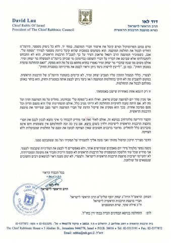 אלו דברי הרב לאו במכתב בפנייתו ליועץ המשפטי לממשלה אביחי מנדלבליט: