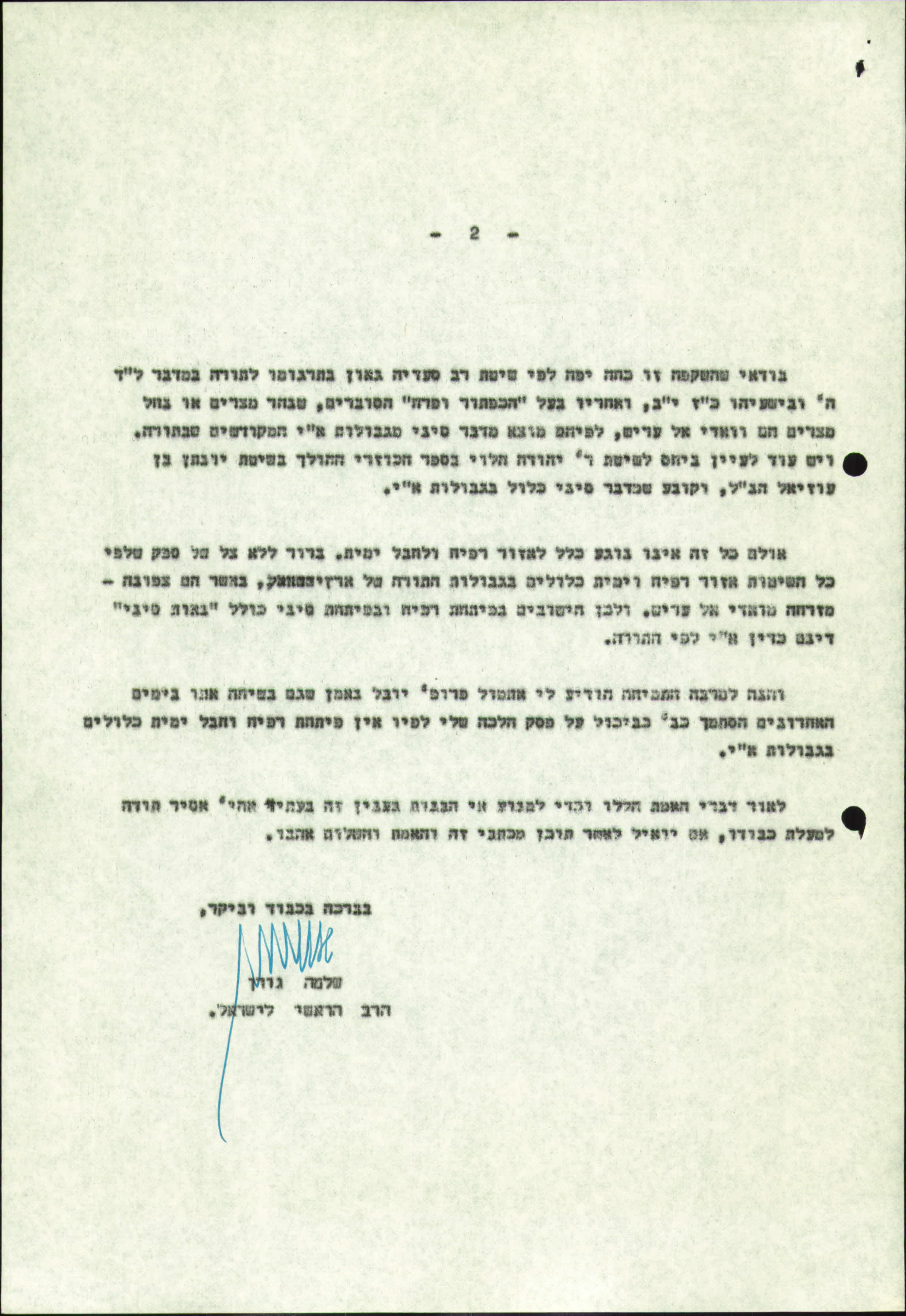 מכתב ביקורת גם לרב גורן
