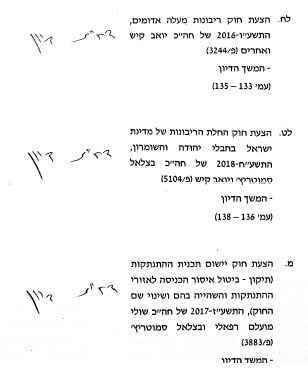 אולם הפעם לא היו תירוצים של חברי הכנסת, והשרה שקד מילאה את דרישתו של נתניהו לא לדון בהצעות ולדחותן על הסף, בתקווה שכפי שאמר השלושה יעלו בתחילת המושב הבא.