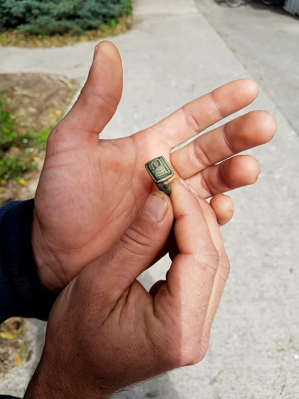 ביום חמישי האחרון, במהלך עבודות גינון ועישוב באחת הגינות במושב היוגב שבעמק יזרעאל, קלטו עיניו של הגנן, דקל בן שטרית בן ה-26, טבעת שלמה הנחה בין העשבים. בן שטרית הרים את הטבעת, והבחין שחרוטה עליה דמות אדם.