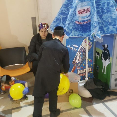 במקביל לגיוס המזון ומשלוחי המנות, תלמידי בית הספר הגיעו בתום צום תענית אסתר לבית החולים שניידר, שם חילקו מגשי פיצה וטרופיות לכל החולים לשבירת הצום. הילדים גם קיימו קריאת מגילה לילדי בית החולים, וארגנו הרקדה שמחה וחגיגית, בסיומה ערכו חלוקת פרסים והפתעות.