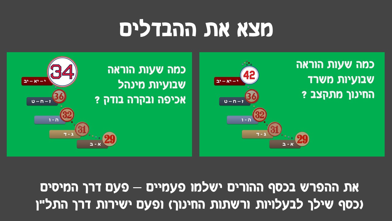 אם אתם בחמ"ד – תלמידי התיכון ידרשו ללמוד 34 שעות בשבוע, כלומר, מספר שעות זהה לכיתה ה'. לשם השוואה, בכיתות חטיבת הביניים, ז', ח', וט', הילדים נדרשים ללמוד 36 שעות בשבוע.
