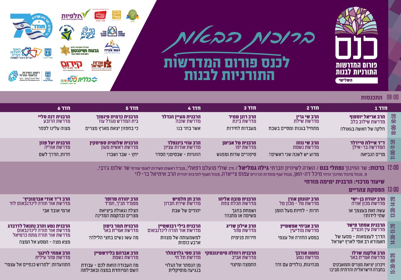 פורום המדרשות התורניות לבנות יקיים ביום ראשון הקרוב (18.3.18) כנס לימוד תורה לנשים והכנה רוחנית לחג הפסח במלון קראון פלאזה בירושלים בין השעות 9:00- 18:00.