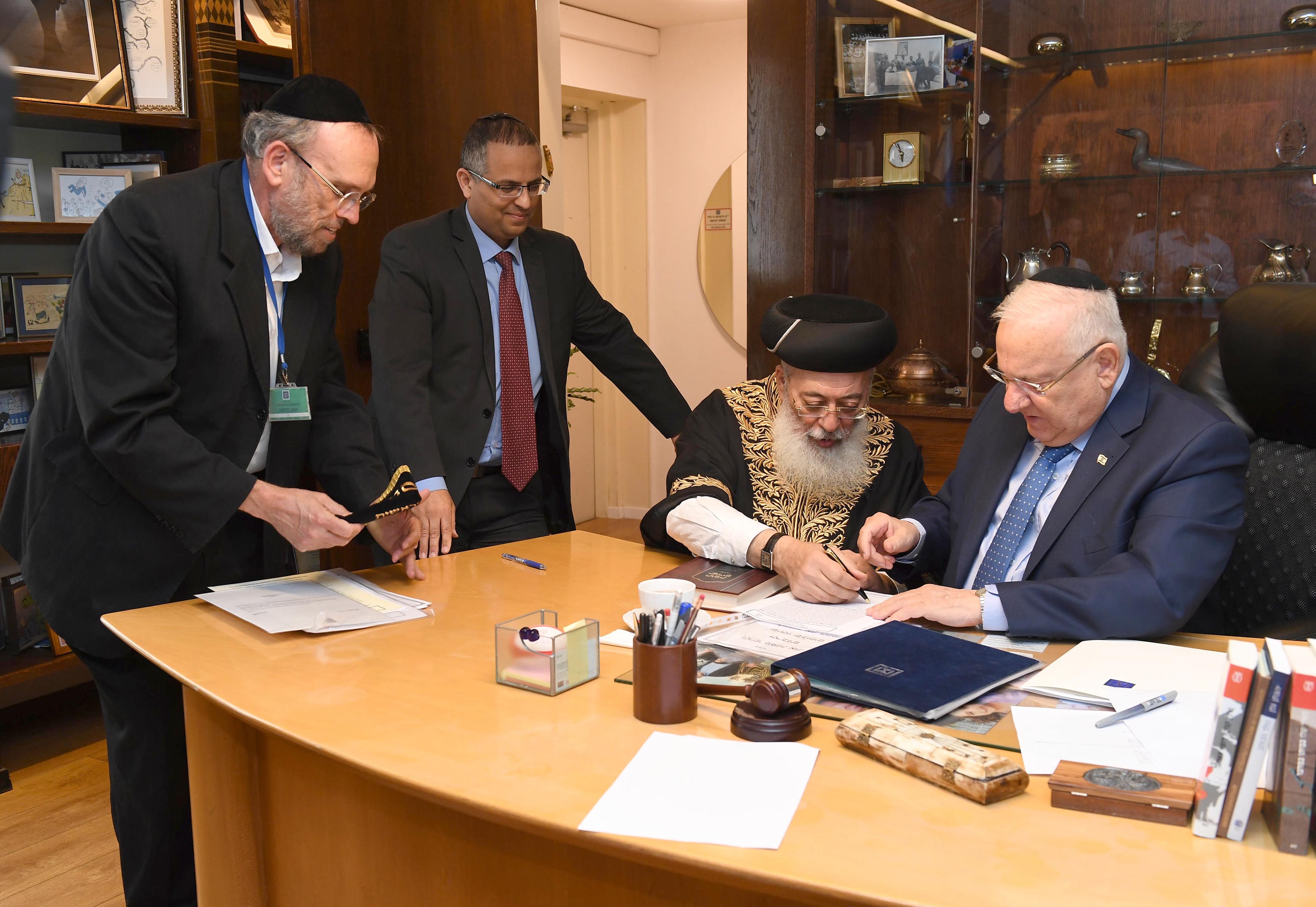 כבכל שנה קיים הבוקר (ד') נשיא המדינה ראובן (רובי) ריבלין מכירת חמץ בבית הנשיא יחד עם הרב הראשי הספרדי של ירושלים הראשון לציון הרב שלמה משה עמאר ומנכ״ל בית הנשיא, הראל טובי.