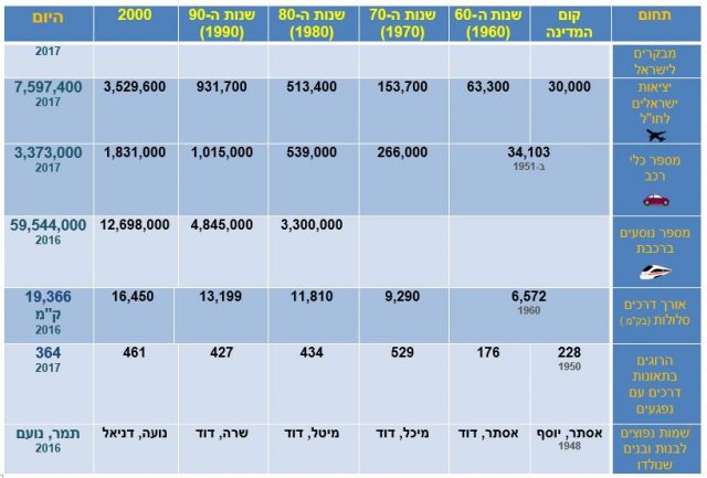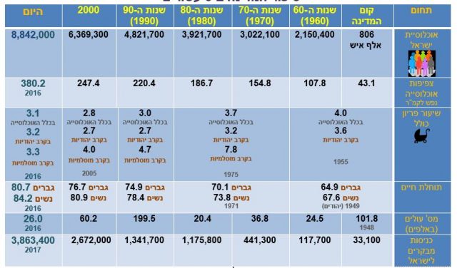 מאז יום העצמאות שעבר, גדלה אוכלוסיית ישראל בכ-163 אלף איש, גידול של כ-1.9%. בתקופה זו נולדו בישראל כ-177 אלף תינוקות ונפטרו כ-41 אלף איש. כ-28 אלף עולים הגיעו לארץ.