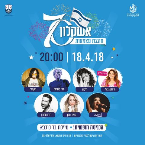 רמת-השרון חוגגת יום עצמאות 70 למדינת ישראל עם: התקווה 6, ברי סחרוף, דנה אינטרנשיונל, שירי מימון, אלישע בנאי, "מרסדס בנד", "טונה", אביאור מלסה ועוד.