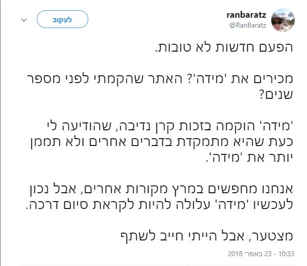בהודעה של ברץ הוא כתב: "'מידה' הוקמה בזכות קרן נדיבה, שהודיעה לי כעת שהיא מתמקדת בדברים אחרים ולא תממן יותר את 'מידה'. אנחנו מחפשים במרץ מקורות אחרים, אבל נכון לעכשיו 'מידה' עלולה להיות לקראת סיום דרכה."