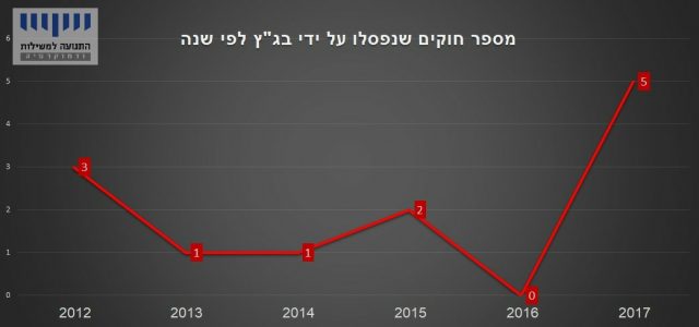 על רקע המאבק בתוך הקואליציה להעביר את פסקת ההתגברות על הוראת בג"צ בנושא חוק המסתננים, מפרסמת היום התנועה למשילות ודמוקרטיה את מספר החוקים אותם פסל בית המשפט העליון בשנים האחרונות.
