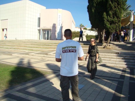 הפעילים אף הגיעו עם חולצות שעליהם מוטבע לוגו התנועה החדשה שהוקמה אתמול וזוהי פעילותה היחידה.