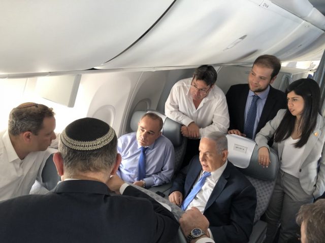 נתניהו בהתייעצות במטוס לקראת הפסגה המדינית בניקוסיה (קרדיט: דוברות לשכת רה"מ)