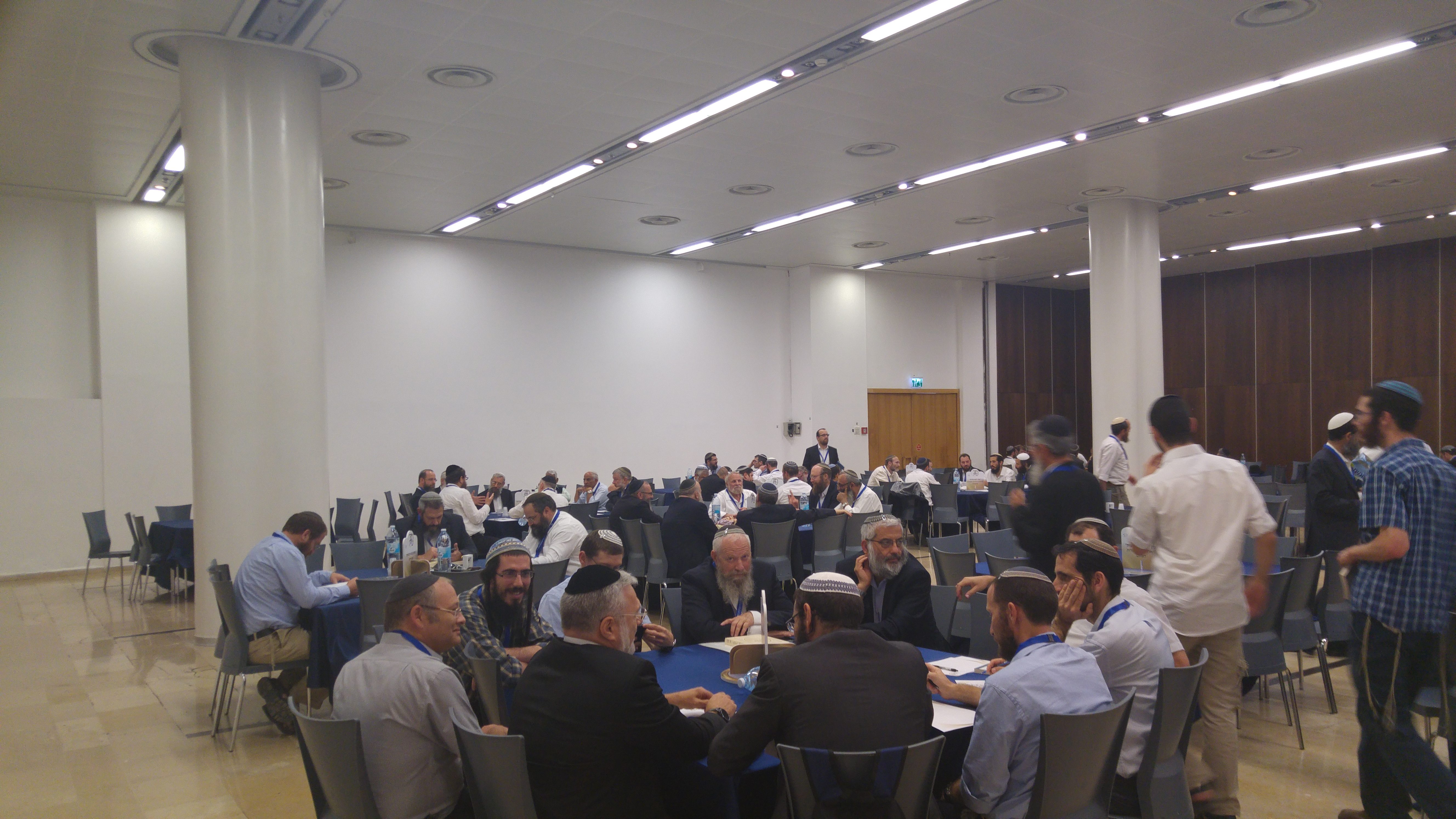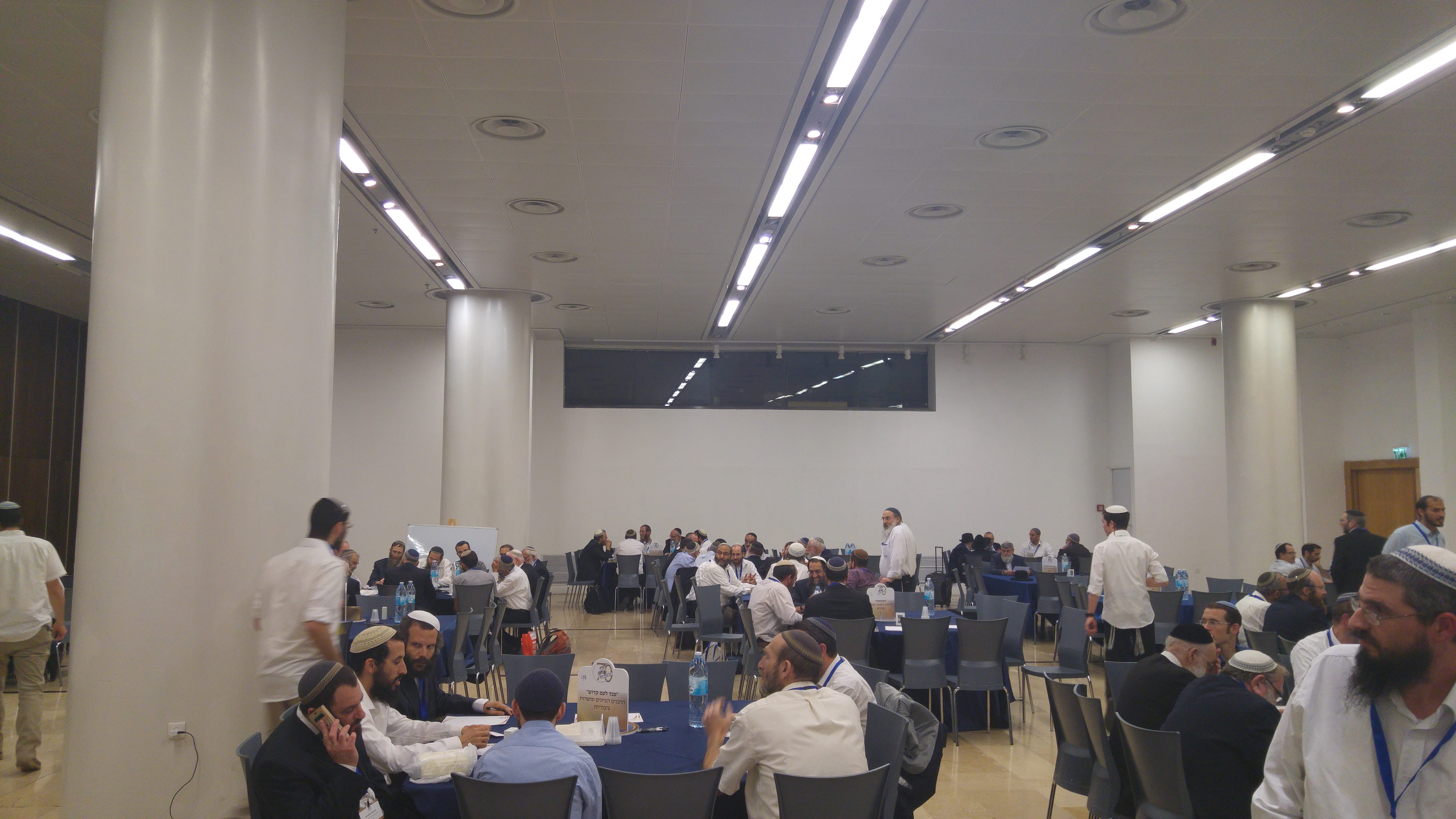מאות רבנים גודשים בשעה זו את אולמות 'כנס האחדות' בבנייני האומה. מתאספים לקבוצות דיון סביב שולחנות עגולים, ודנים במגוון נושאים העומדים על הפרק.