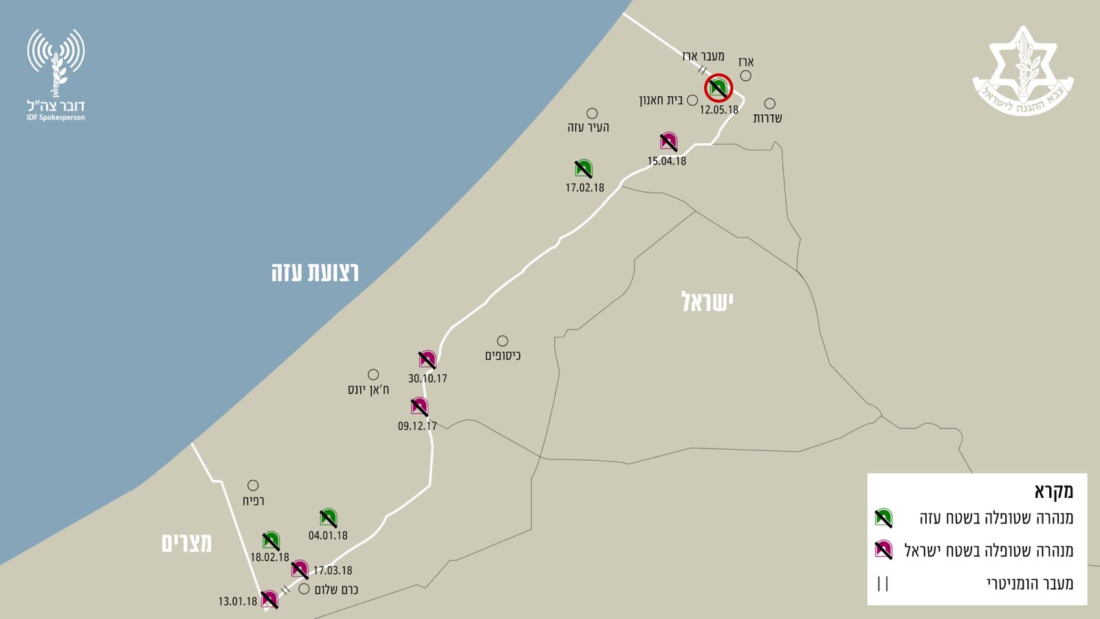 מנהרת הטרור שנוטרלה הערב סמוכה למעבר ארז, המשמש למעבר רגלי לצרכים הומניטריים, מצטרפת למנהרת הטרור שנחפרה תחת מעבר כרם שלום ונוטרלה בינואר האחרון. המנהרות מוכיחות את הציניות של ארגון הטרור חמאס כלפי תושבי רצועת עזה.