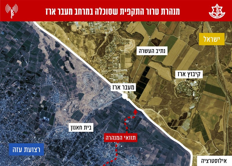 הערב (שבת) נוטרלה מנהרת טרור התקפית נוספת של ארגון הטרור חמאס במרחב מעבר ארז. תוואי המנהרה נוטרל באמצעות תקיפת מטוסי קרב