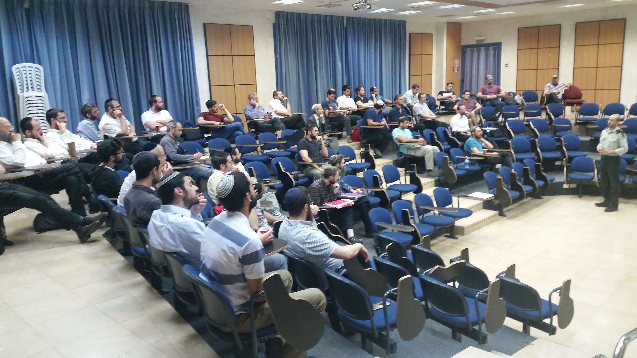 סא"ל בן עזרא – בנו של הרב דוד בן עזרא, מרצה ותיק בחוג כבר מעל 43 שנים – נתן סקירה מקיפה מבלי לגלות מה שנבצר ממנו. בדבריו הדגיש כי "אנחנו גרים "בשכונה" מאתגרת מאוד מבחינה ביטחונית, הן הביטחון האישי והן הביטחון הלאומי. מידי תקופה נוספים אתגרים חדשים (דוגמת רקטות, פצצות מרגמה, מנהרות עפיפונים ועוד ועוד) המחייבים אותנו להיות יצירתיים ולתת מענה מהיר, יעיל וחדשני, ועם זאת לא לפרוץ את מגבלות התקציב והמשאבים.