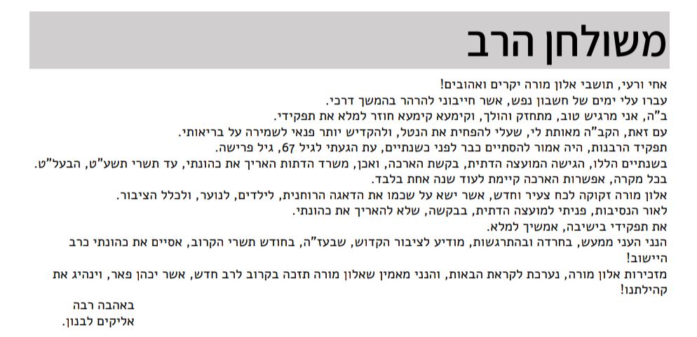 "אחיי ורעי תושבי אלון מורה היקרים והאהובים", כתב הרב לבנון לתושבי היישוב.