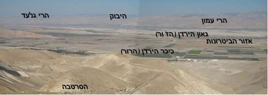 שפך היבוק לירדן. העיר אדם הייתה בנקודת החיבור. מבט מהסרטבה (נתן יואלי)