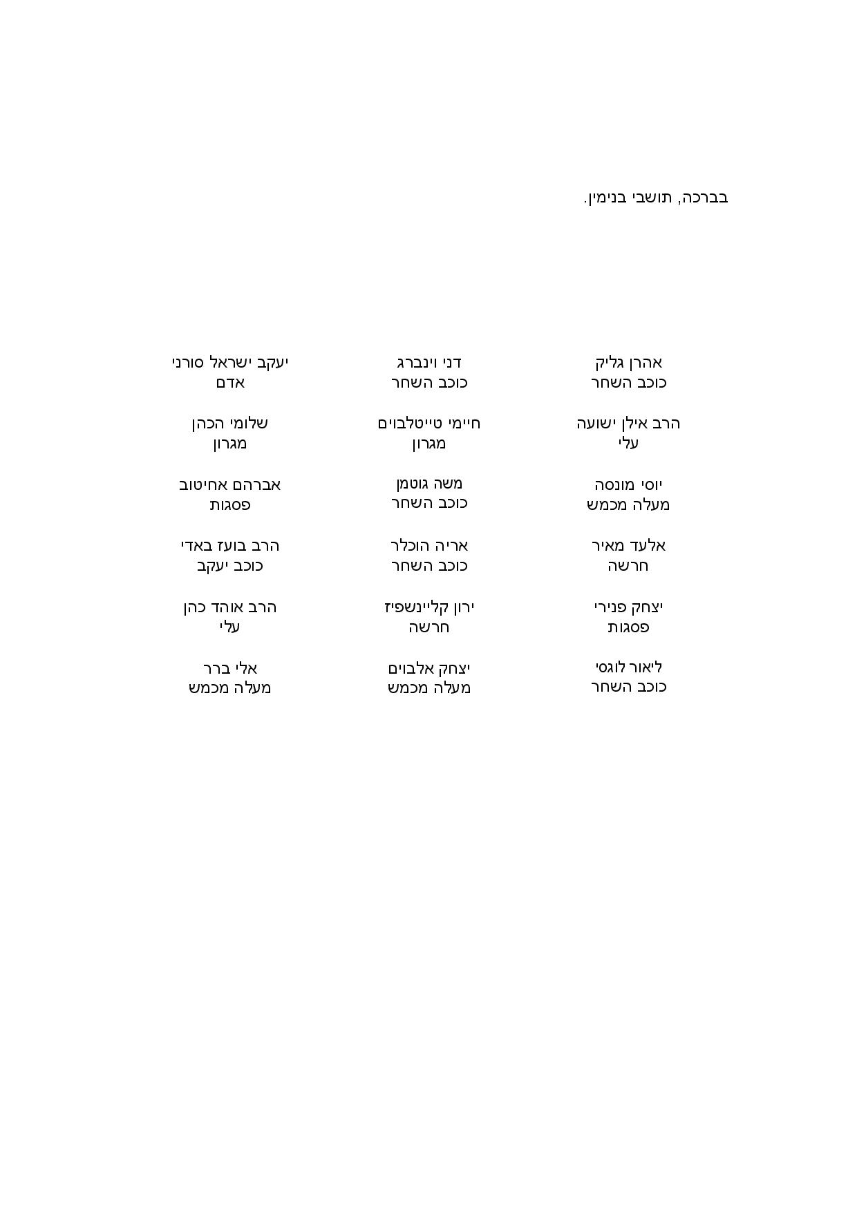בפתח המכתב פונים התושבים, לחברי המועצה: "אנחנו מאמינים שהקו השומר על האחדות, שלוות החיים הגשמיים והרוחניים ושמירת הערכים המציינים את נחלתנו, הוא ינחה ויוביל אתכם לבירור נכון וישר בסוגיא הנוכחית".