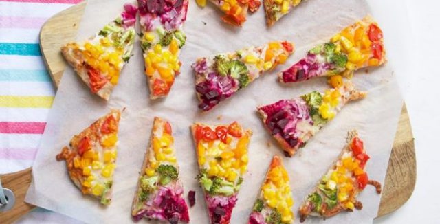 4. מסדרים את הירקות על הפיתות לפי צבעי הקשת או הדגל